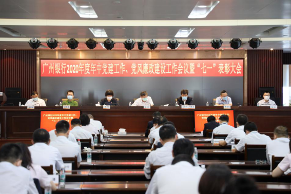 为庆祝中国共产党成立99周年,广州银行于7月1日召开2020年度年中党建工作、党风廉政建设工作会议暨“七一”表彰大会。总行行领导、派驻纪检监察组副组长、合规总监、首席信息官、总行部室负责人、各基层党组织书记、分行行长共120余人参加了会议。由于疫情防控需要,各分行设分会场视频参会。